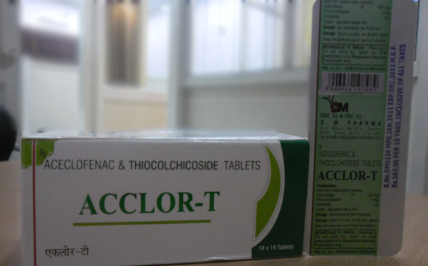 Thiocolchicoside, a semi-synthetic derivative of the naturally occurring compound colchicoside and is a muscle relaxant agent with anti-inflammatory and analgesic actions, also is used topically for the treatment of muscular spasms and for rheumatologic, orthopedic, and traumatologic disorders and has been found to displace both [3H] gamma-amino butyric acid ([3H] GABA) and [3H] strychnine binding, suggesting an interaction with both GABA and strychnine-sensitive glycine receptors. Aceclofenac belongs to a group of medicines called non-steroidal anti-inflammatory drugs (NSAIDs) and of phenyl acetic acid derivative with effects on a variety of inflammatory mediators. It works by blocking the action of a substance in the body called cyclo-oxygenase. Cyclo-oxygenase is involved in the production of various chemicals in the body, some of which are known as prostaglandins. Prostaglandins are produced in response to injury or certain diseases and would otherwise go on to cause pain, swelling and inflammation. Combination of proven NSAID Aceclofenac with an effective non sedating Muscle Relaxant Thiocolchicoside to treat painful muscle spasm.