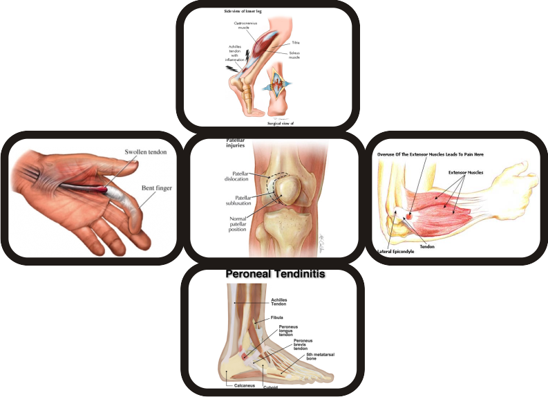 Chronic injury of tendon is often associated with degenerative changes in the tendon fibers. Very commonly, cumulative trauma, repetitive strain, overuse motions are alone or in combination associated with different variants of this condition, called, otherwise, as tendinopathy or enthesopathy . Specific conditions include tendonitis, tenosynovitis, peritendinitis, paratenonitis or tendinosis.